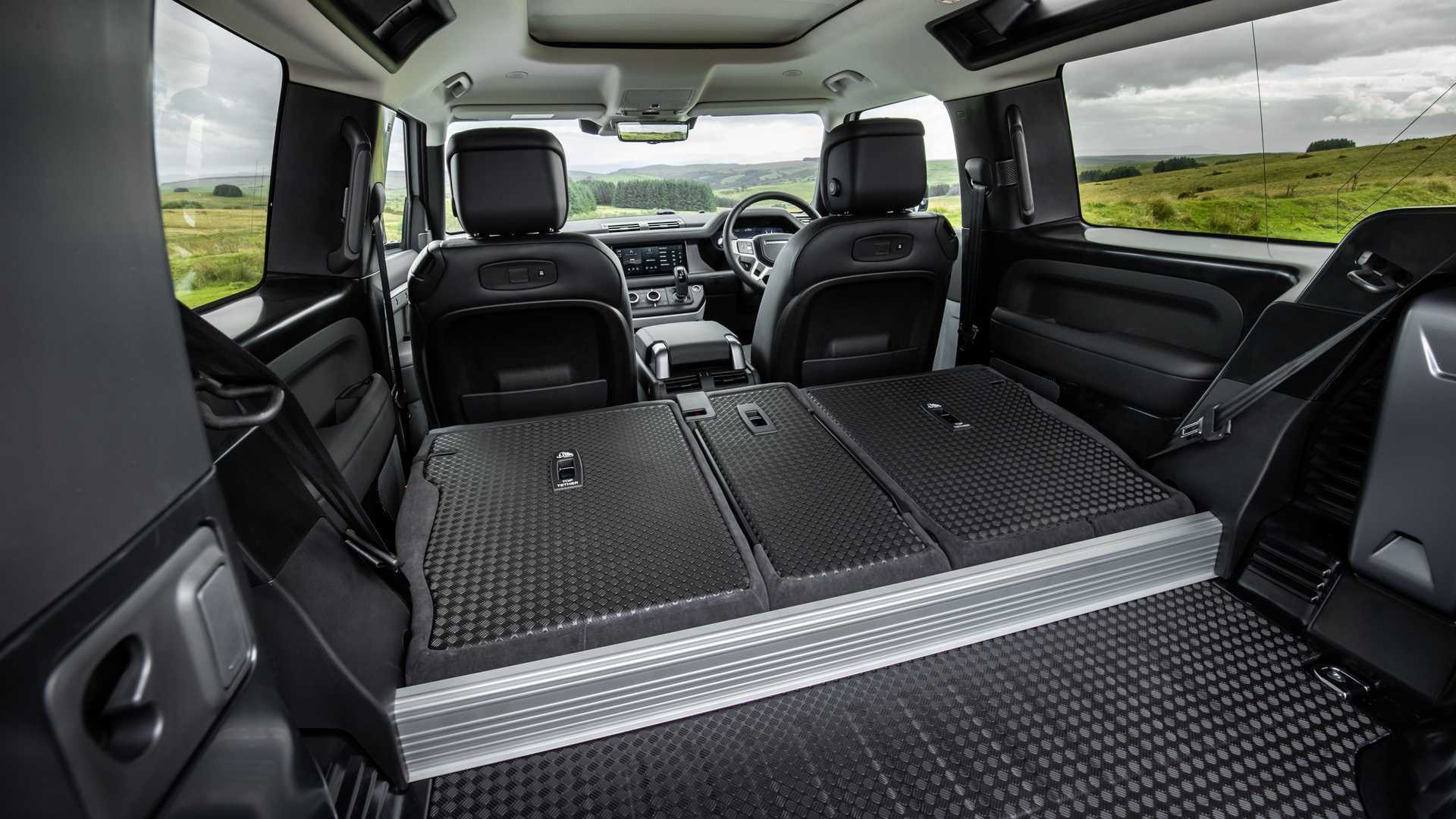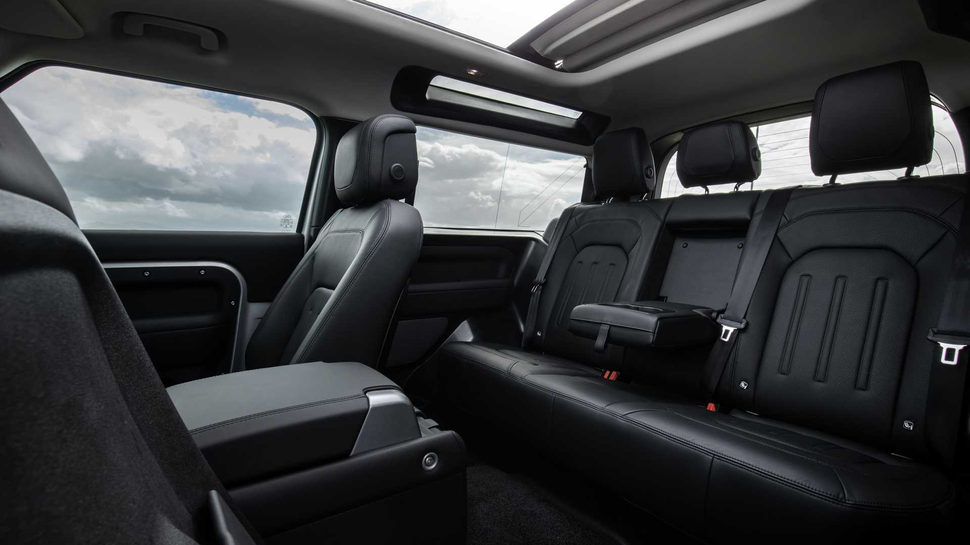比较意外的一点,卫士90居然提供六座车型可供选择,据说前排中间区域可以折叠使用,以选装件的形式存在(图中车辆并没有选择此功能)。大概就像我们“两房一厅”的货车前排一样,大家可以自行脑补一下。