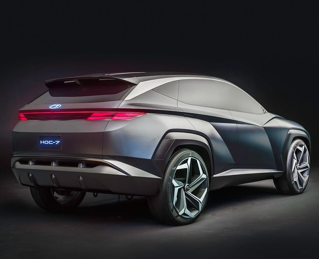 全球首发的途胜实车,与概念车Vision T相似度极高,车身几乎很少有平直的线条,大量棱角和直角形成独特的科幻感,同时高轮眉与大尺寸轮圈搭配,运动风格明显;隐藏式B/C柱设计,营造出悬浮式车顶的效果。车尾的设计同样非常出彩,贯穿式尾灯组,加上两侧大灯采用的獠牙风格,辨识度明显提升。