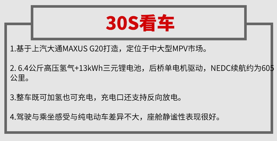 EUNIQ 7是一款MPV,而在它之前则是一款FCV80的乘用车,所以说EUNIQ 7并不是上汽随意弄出来的。上汽对于氢燃料电池的研究始于2001年,这么多年的技术研究,终于到了结果的时候了。