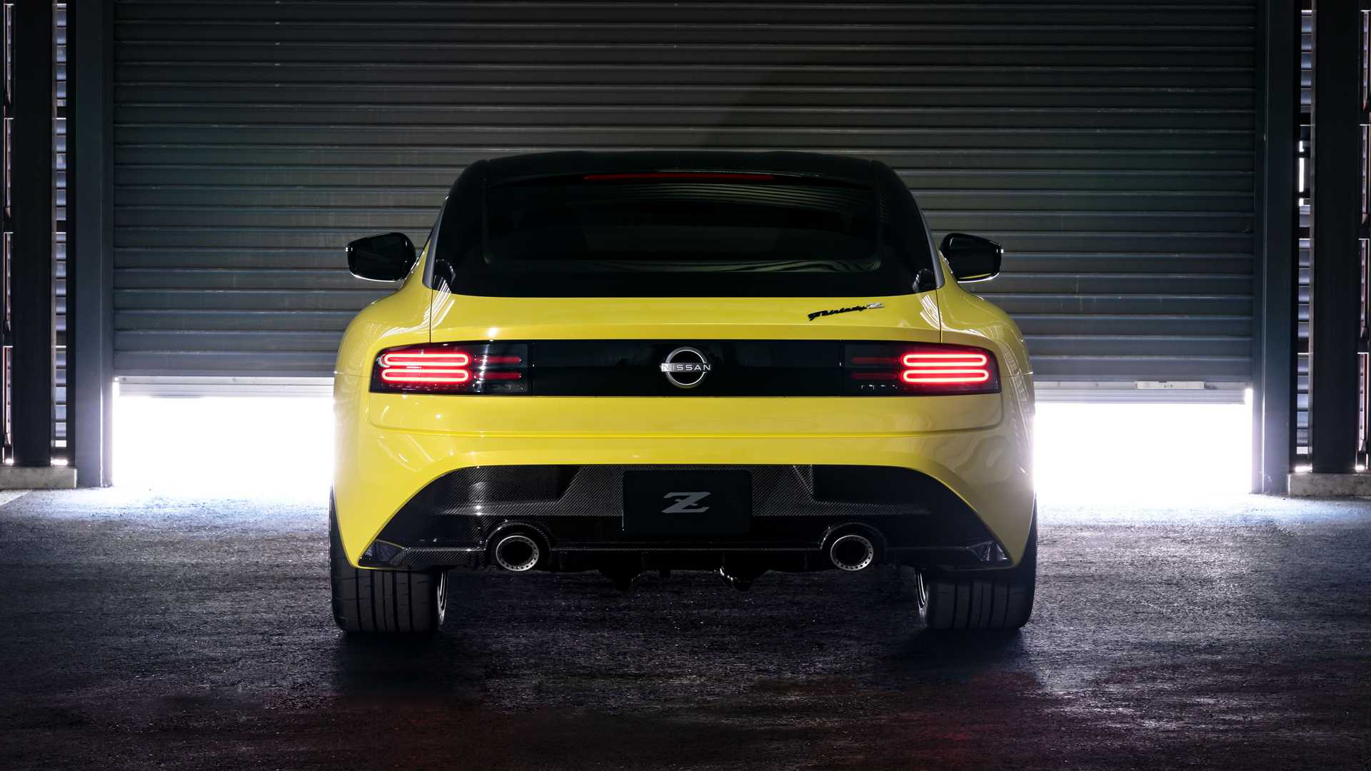 与历代车型相比,Z Proto变化最大的莫过于车尾,长条形圆角贯穿式尾灯抢夺了所有目光,在黑、黄撞色之下凸显了层次感,而在设计上这是致敬了第四代Z系列跑车300ZX。车尾下方也为扩散器预留了足够的位置,排气系统为双边共两出。