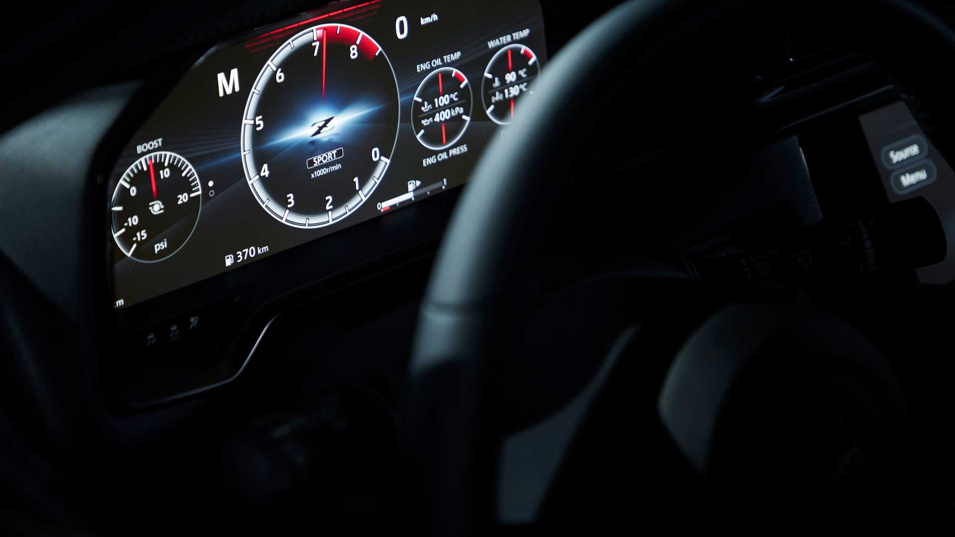 但Z Proto始终还是一台跑车,太过于舒适的配置会影响画风,所以我们能看到该车在中控上方延续了历代车型的配置,涡轮压力、涡轮转速以及电压三联标,有范也有用。