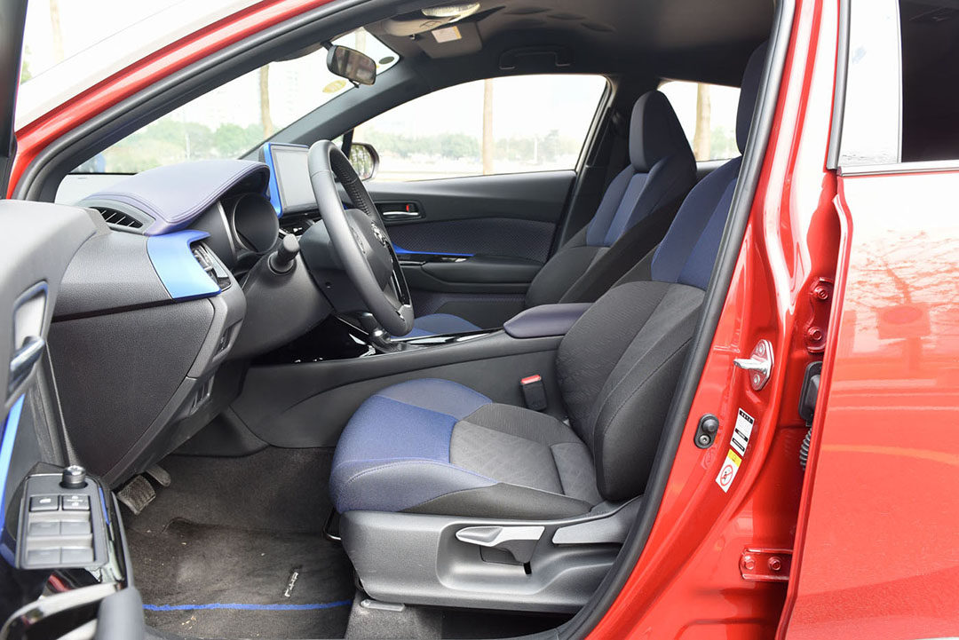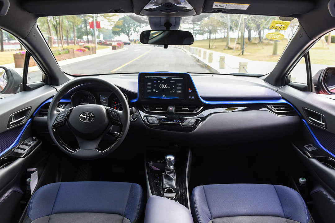 丰田C-HR的中控台采用了非对称式设计,副驾驶侧手套箱部分突出且造型比较厚重,因此给前排带来了一些拥挤感。