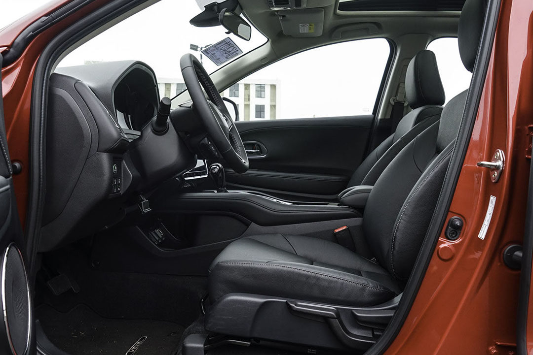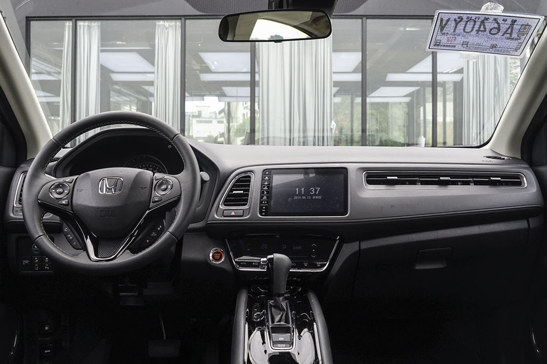 而同级的本田缤智虽然同样采用非对称式中控设计,但由于副驾驶侧手套箱部分线条向上抬升,使前排空间感得到改善。
