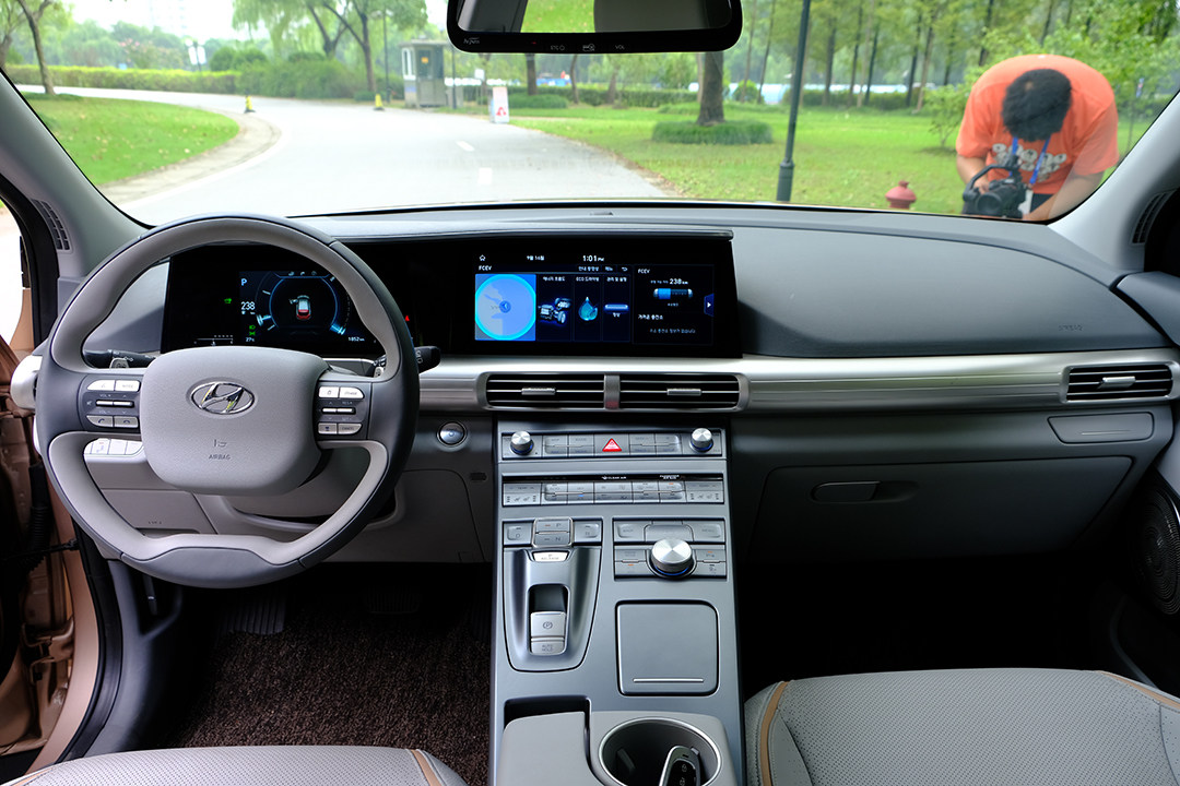 在乘坐方面,其后排并没有如某些纯电动车一样因为电池布局被“抬高”,头部空间更有保证。只是后备厢因为三个体积不小的储氢罐以及锂电池组,在高度上要弱于燃油车型,但与纯电动相比则是不相上下。