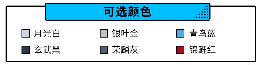 值得一提的是,黑、白、灰三个颜色可以选择官方提供的新锐版专享包,包含了17寸黑骑荣麟轮毂、荧黄饰圈 荧光L型专属雾灯饰条、亮黑外后视镜和底座、荧光速锐R型专属徽标。