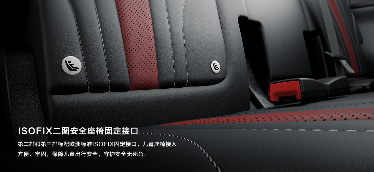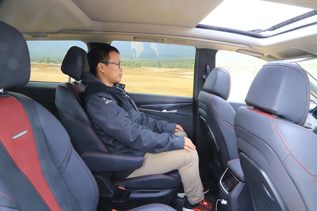 大尺寸更是带来宽敞的空间,身高1.75米的乘客坐在第二排,有着宽敞的腿部空间和头部空间,而且地板非常平整,二排座椅还可以前后移动,靠背角度也可以调节;并且第二排和第三排均有配备ISOFIX儿童安全座椅接口,考虑相当到位。