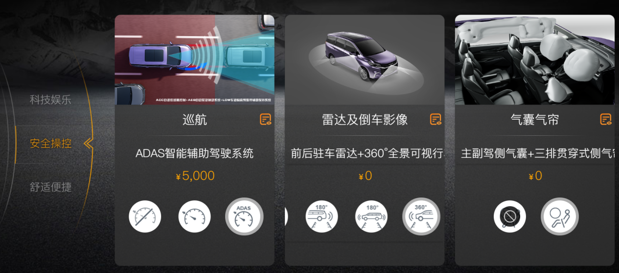 所以根据这些方向,在上汽大通MAXUSG50的车型官网就可以进入界面进行定制,主动刹车、自适应巡航和车道保持是一定要的,不仅可以给提高日常行驶的舒适性,长距离通勤或者是节假日出游可以节省很多的精力。