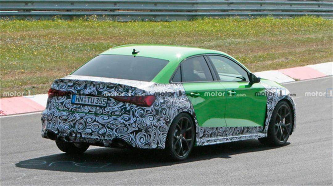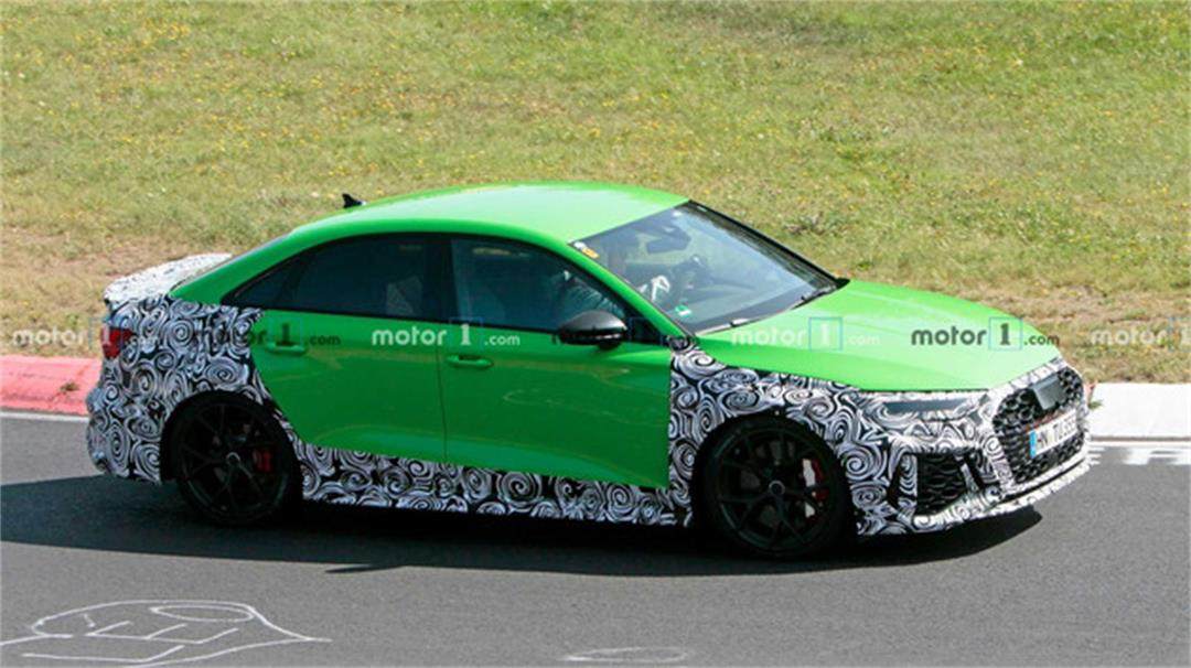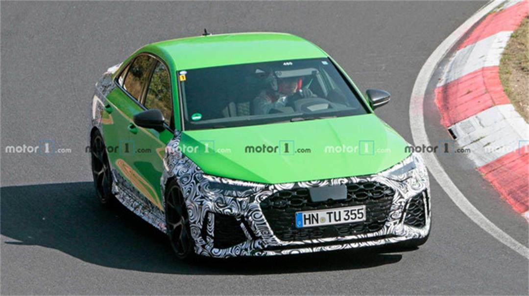 近日,网上曝光了一组全新奥迪RS 3的谍照,新车仅在前脸、车尾以及侧裙采用了伪装包裹,而图中的RS 3正在纽博格林进行最后阶段的路试。