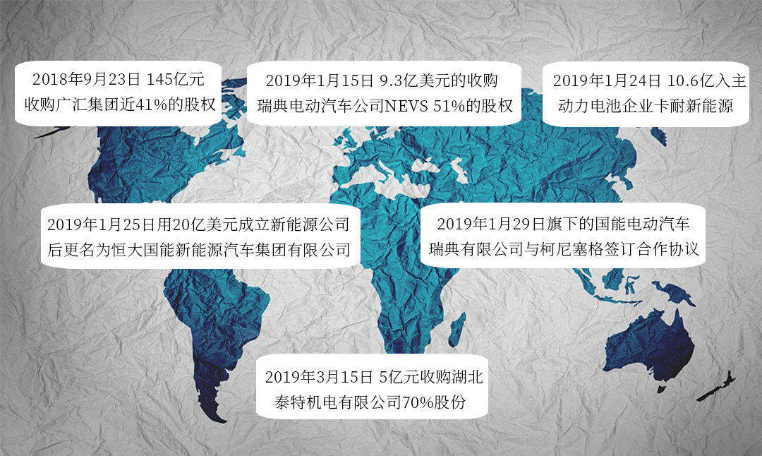 除了与供应商的合作以外,恒大本身也开始涉足供应链当中,例如9.3亿美元收购瑞典的全球性电动汽车公司NEVS 51%股权;10.6亿入股动力电池企业卡耐新能源;5亿元收购湖北泰特机电有限公司70%的股份等,为后续技术研发进行储备。
