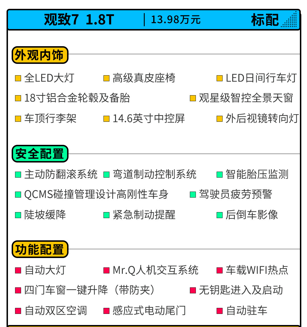 跟同级别主流国产自主品牌相比又怎么样?或者有哪些亮点值得消费者去选择的?下面,就一一做个解说和分析,究竟观致7,买哪款更超值?