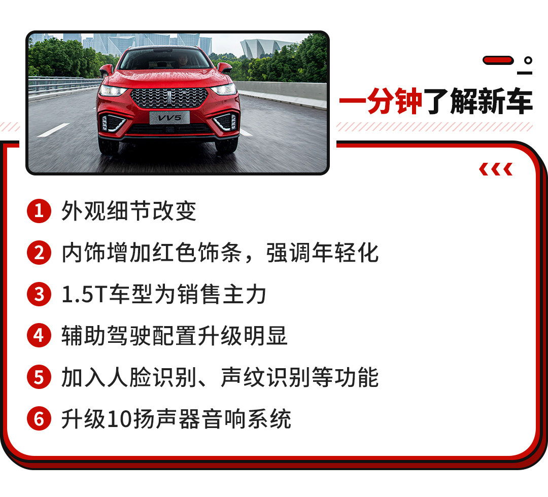 虽然这一次不是大换代,但通过外观以及内饰的小变化让车辆更加贴合年轻人的哟行车需求,同时在配置上可谓是进行了全面的升级。VV5自诞生以来,始终扎根年轻人群体, 2021款更新了智能驾驶辅助系统后,进一步贴合年轻人的消费需求。