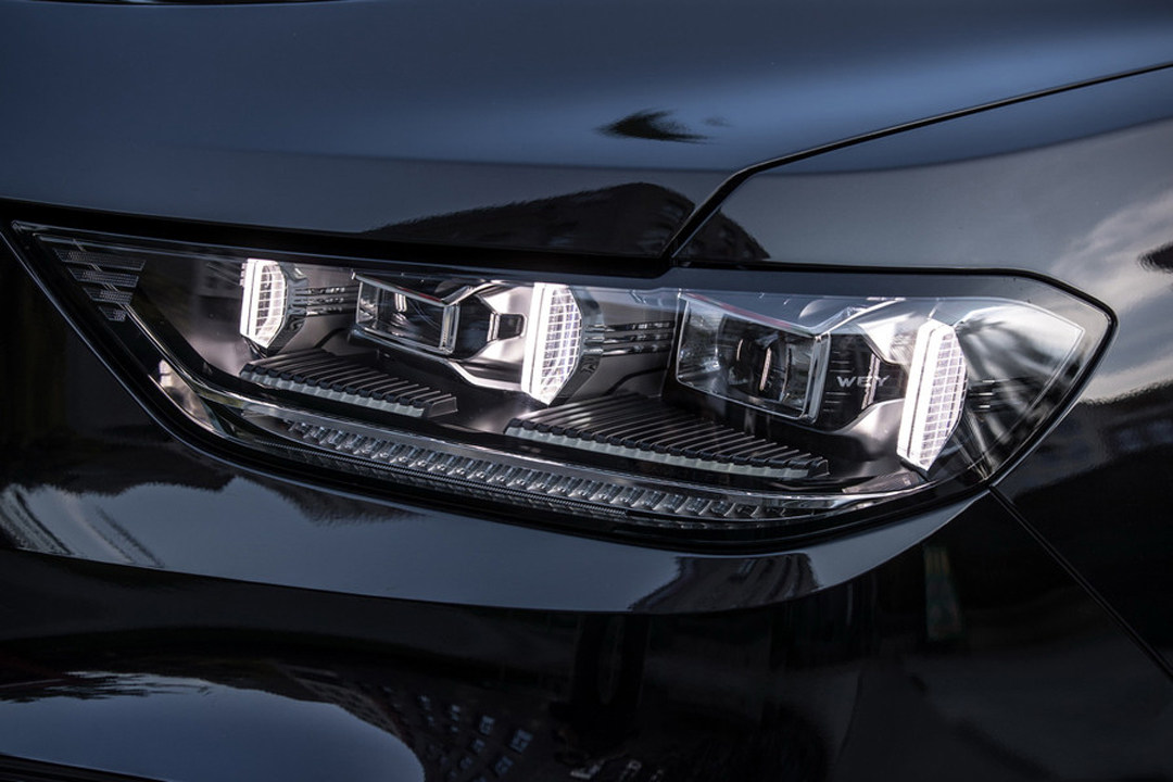 与车标呼应的竖条状LED日间行车灯相当有辨识度,无论是白天还是黑夜都能一眼判断这是WEY的车型;此外,根据实际体验,该车的LED灯光效果出色,无论是亮度还是色温都平衡得很好,在夜间提供足够的主动安全保障。