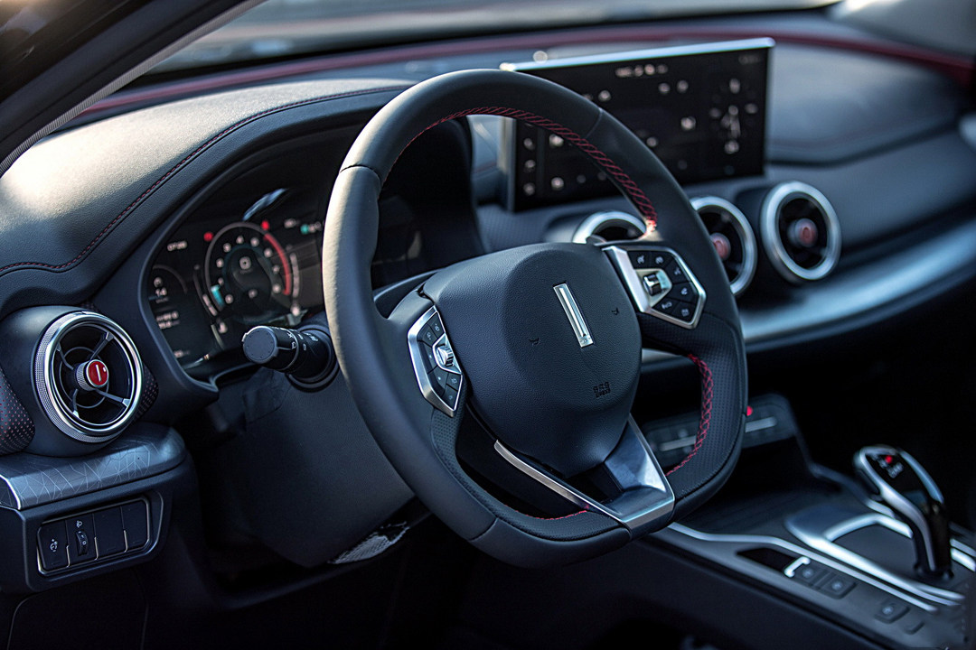 内饰部分相比起外观的变化会相对显著些,虽然基本的搭配风格没有大改变,但是全车在原来全黑内饰基础上增加了红色的点缀,例如最明显的就是环绕车厢的红色饰条、方向盘上的红色缝线以及空调出风口红色装饰,这一切都是为了运动感服务。