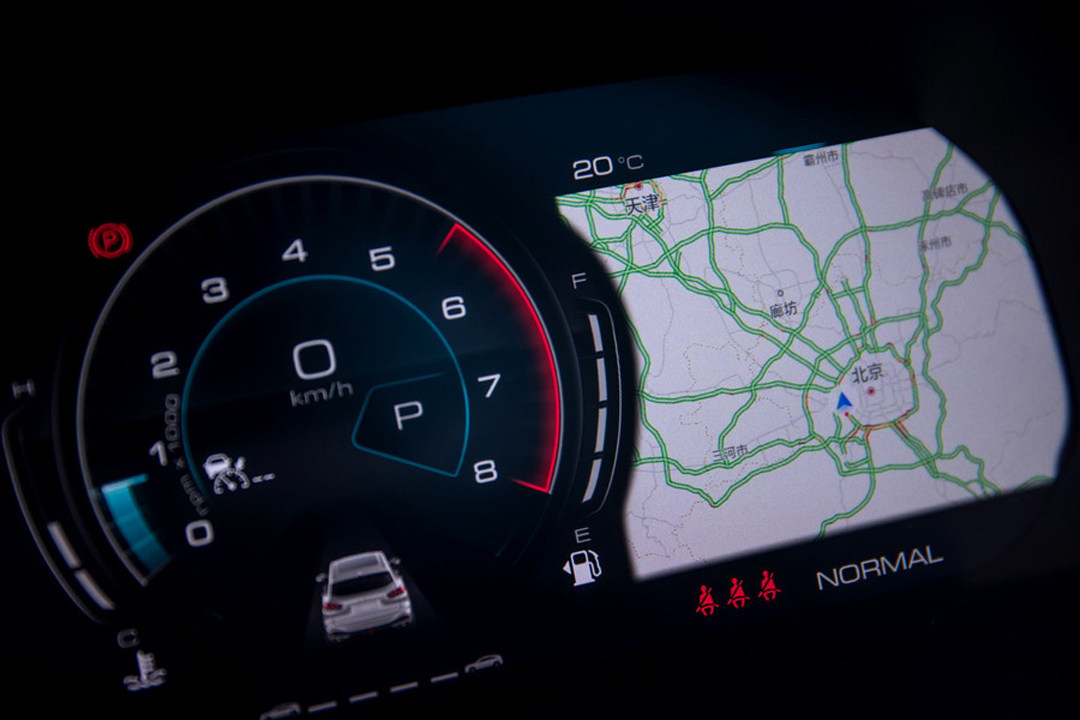 12.3英寸的全液晶显示屏显示效果清晰,中央为车辆工作状态,而两侧则显示行车信息以及多媒体信息,整体布局清晰易读;雾面的设计能有效防止眩光。如果不喜欢中置仪表的样式,还有另外两种UI可选。