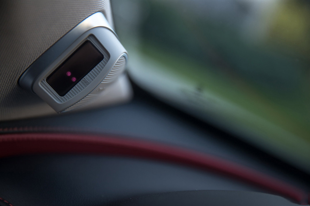 A柱上有一个看似音响高音头的装置,其实是车辆的驾驶员检测系统,它可以进行人脸识别、声纹识别、疲劳监测、分心检测、表情识别等功能。通过该装置,车辆识别驾驶员之后,可以通过智能车机同步一些内容以及设置等,未来全车互联开通之后,预计可以实现识别驾驶员后主动调节座椅、方向盘以及熟悉的UI等设置,相当贴心。