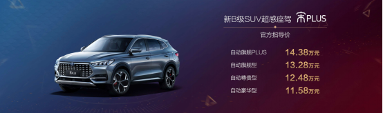 2020年9月20日,比亚迪年度又一重磅新车—新B级超感座驾宋PLUS在羊城广州夺慕上市!此次上市的宋PLUS燃油版本共发售四款车型,全国统一售价为11.58万元-14.38万元,同时带来“感享焕新、感享无忧、感享臻选、感享双享、感享智联”五大专享礼遇,为用户带来PLUS版本的超感用车体验。