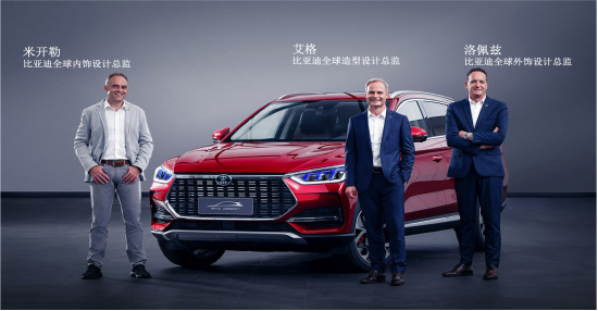 宋PLUS(燃油版)与比亚迪三位设计大师合影