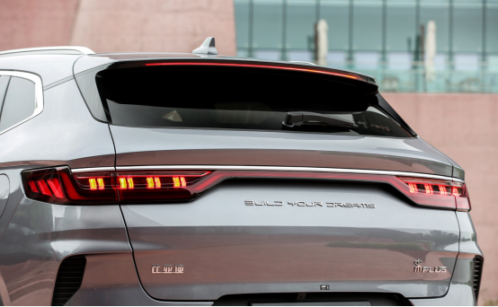 以龙遨游天际的姿态为灵感,形成的龙冲刺式贯穿腰线,构成侧面曲线,带来极致动感表现,也让车身曲面之间的光影效果惹眼又显精致。值得一提的是,宋PLUS采用的天际线LED高位制动灯长达1011mm,为同级SUV最长,其媲美豪华轿跑的点亮效果,不仅有出色的设计感,也为用户带来极佳的安全感。