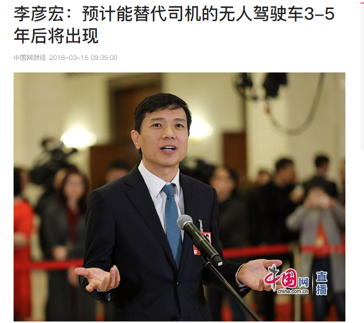 其实这已不是李彦宏第一次在公开场所发表对无人驾驶的预测,早在2018年3月15日,李彦宏就预测,3到5年时间,在完全开放道路上,完全替代司机的无人驾驶车将出现。
