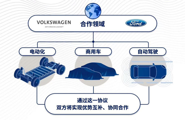 另外,福特和大众展开了合作。今年6月份,福特和大众正式签署了战略合作协议书,就电动化、商用车以及自动驾驶三大领域开展合作。