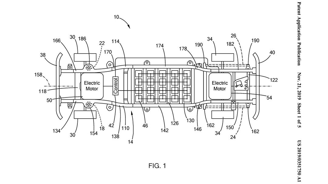 鲜有人知的是,在此之前,福特就曾申请一个将电池包与电机置于车架之内的专利,福特早就已经在为纯电动F-150的量产投放市场提早作出了准备。