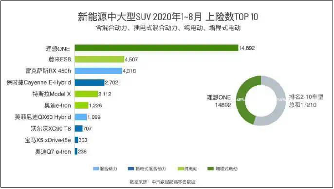 数据显示,理想ONE今年8月份交付了2710台,成为当月插电式混合动力上险数NO.1,而今年则累计上险14892台,作为一台超过30万元的新势力品牌车型,这个成绩还算是理想了。