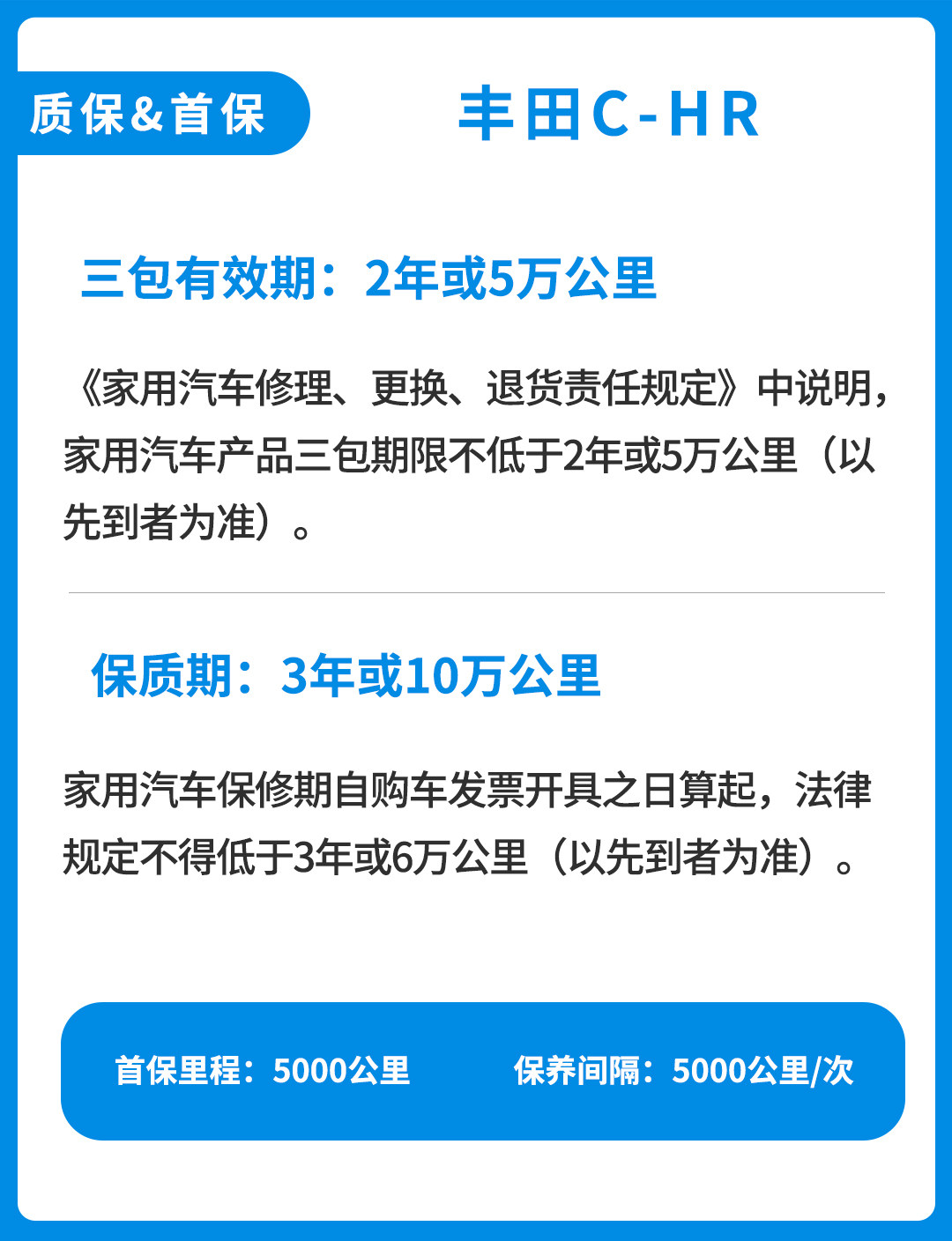 根据官方的保养建议,C-HR的首保里程为5000公里,之后的保养周期为5000公里一保;对比起一些10000公里一保的车型来说确实会花费更多的金钱和时间成本。