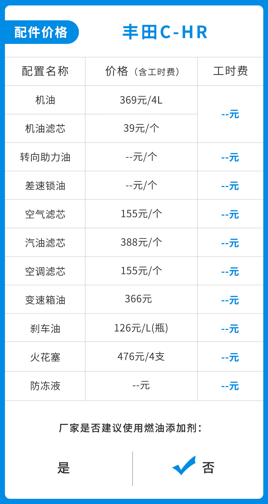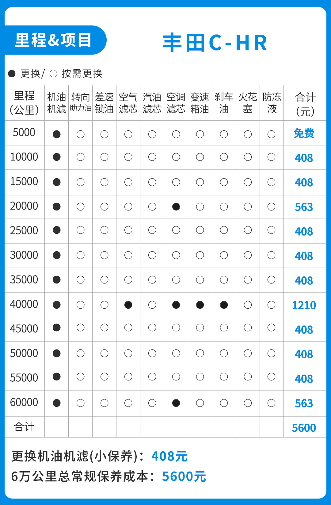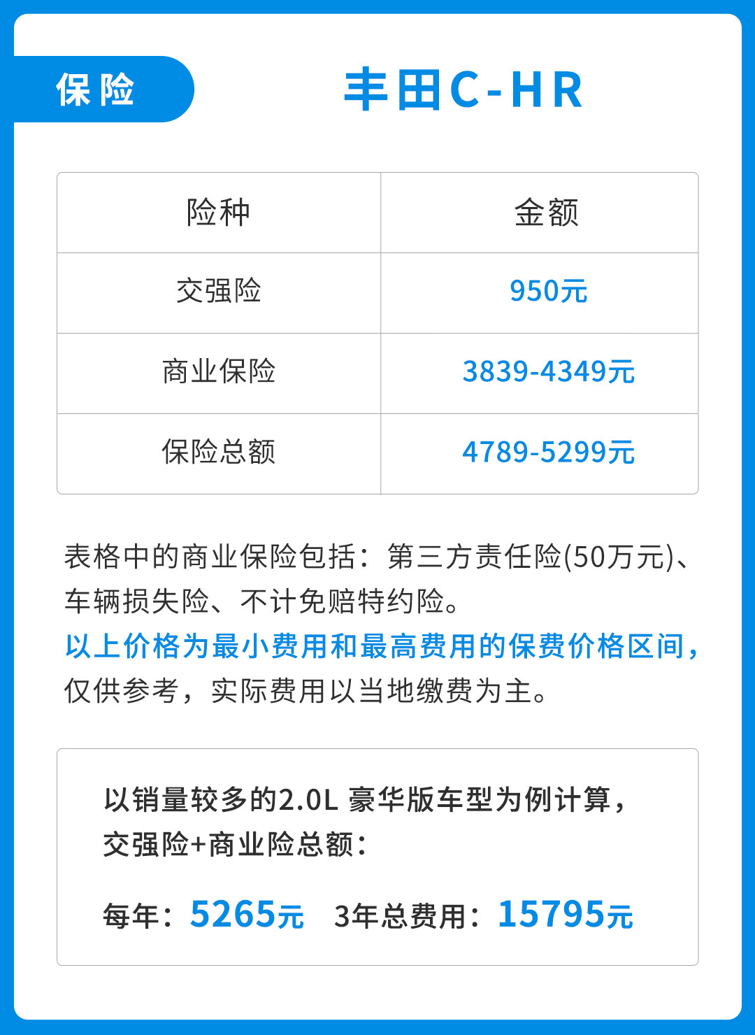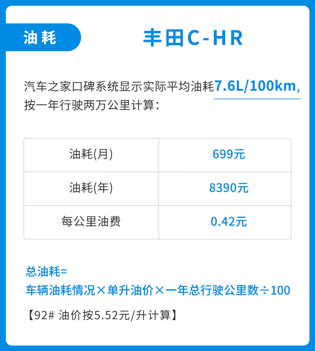 丰田旗下车型一贯以较低的油耗表现被众多消费者喜爱,而C-HR自然也不例外,那么再加上保养和保险呢?