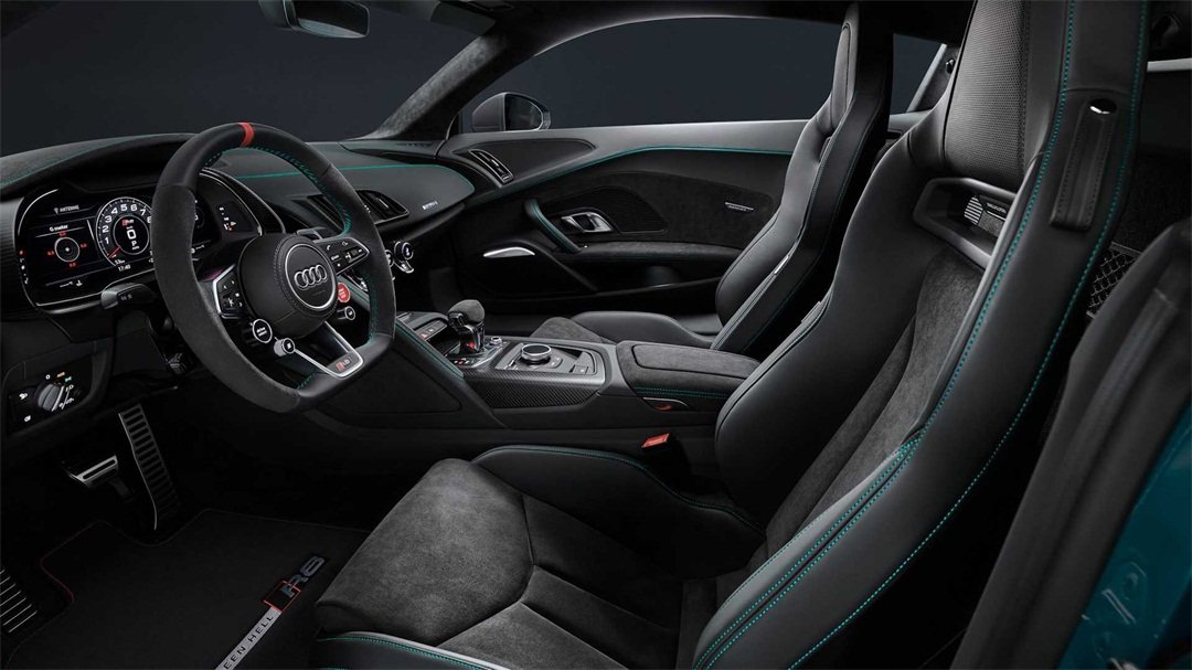 近日,奥迪发布了R8绿色地狱特别版以致敬自2012年以来,奥迪在纽博格林24小时耐力赛中赢得了五场总冠军。限量版车型针对外观部分进行升级,整体的设计更加接近赛车的风格。首先在配色上,特别版车型采用了深绿色的涂漆,除此之外,还有白色、灰色以及黑色可选择,并且在车头、A柱、车顶以及车尾位置也加入了黑色赛道风格的贴纸。后视镜、尾翼、侧翼以及后扩散器采用了黑化处理,20英寸的五辐黑色轮圈,并带有红色装饰。内饰部分,R8特别版车型多处使用了Alcantara材料打造,其中包括方向盘、中央扶手、护膝以及仪表台等位置。整体的内饰以黑色为主,但在部分位置使用了蓝绿色的缝线进行点缀,与外观配色相类似,另外,在地垫上印有“GREEN HELL R8”徽标。动力部分,R8特别版车型搭载了5.2L V10自然吸气发动机,最大马力达到611Ps,与其相匹配的是一台七档S Tronic变速箱,加上quattro四驱系统,官方给出的百公里加速时间为2.1s,相当夸张。作为限量版车型,R8绿色地狱版将限量50台,德国的起售价为233949.59欧元,约合人民币185.6万元。