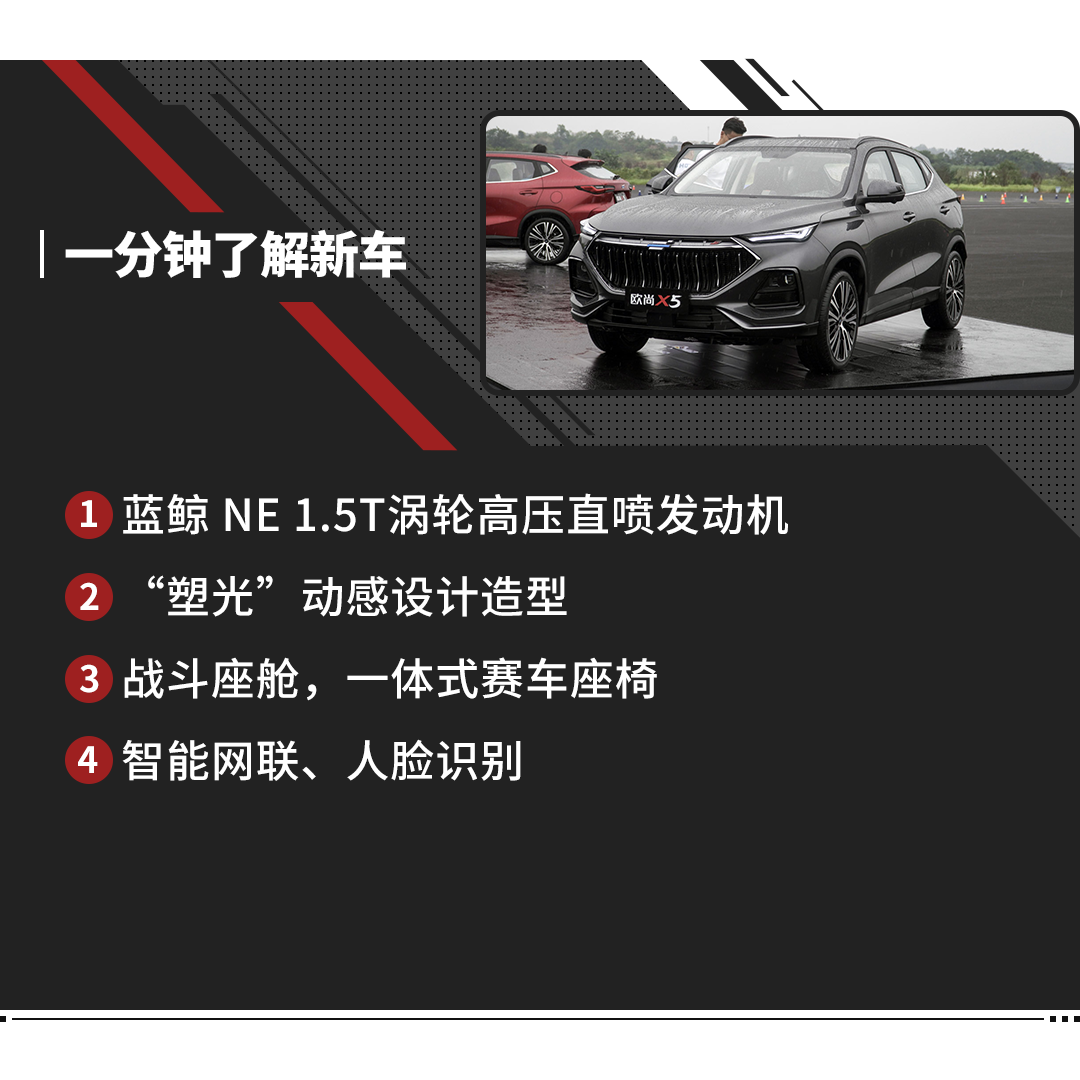 动力方面,长安欧尚X5首次与蓝鲸家族旗下车型共同应用NE动力平台,搭载蓝鲸NE 1.5T涡轮高压直喷发动机。其最大输出功率为180马力,峰值扭矩300牛·米。同样是追求小排量涡轮的1.5T,大多市面上的同定位车型数据可没有长安欧尚X5交出这样的数据答卷让人惊喜。