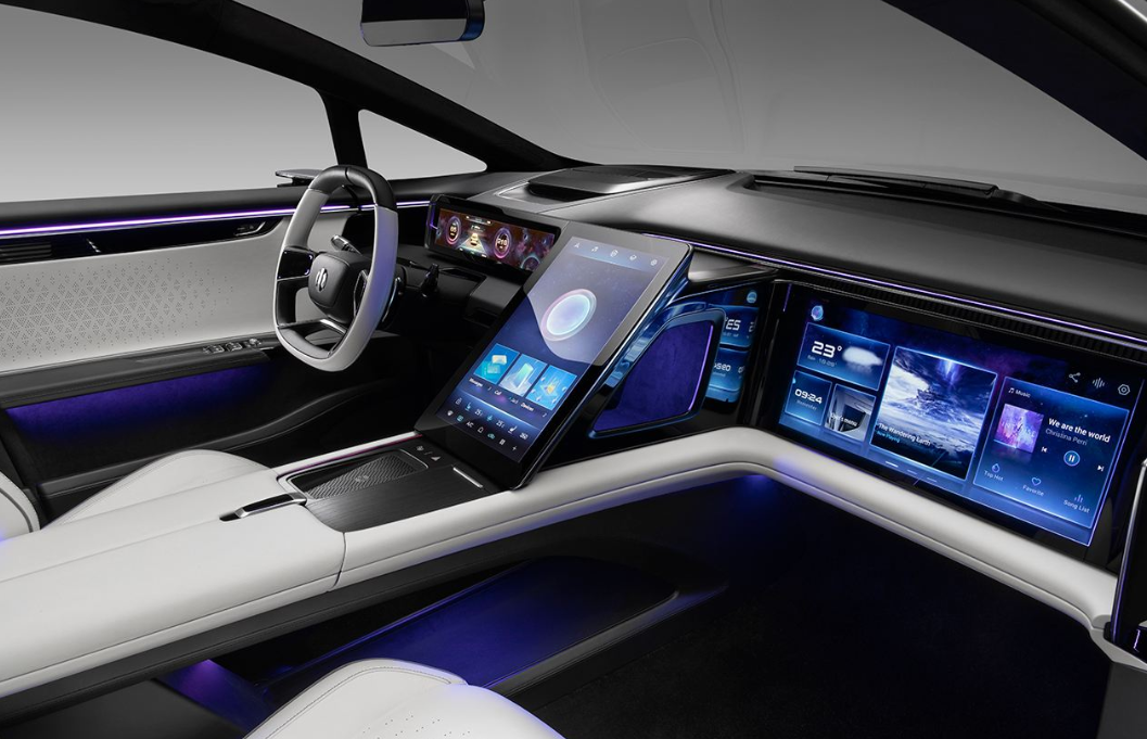 HiPhi X内饰由三块大屏幕构成,分别为14.6英寸仪表盘、16.9英寸中控屏和19.9英寸副驾娱乐显示屏,整体视觉效果还是很有冲击力,营造出较强的科技感。