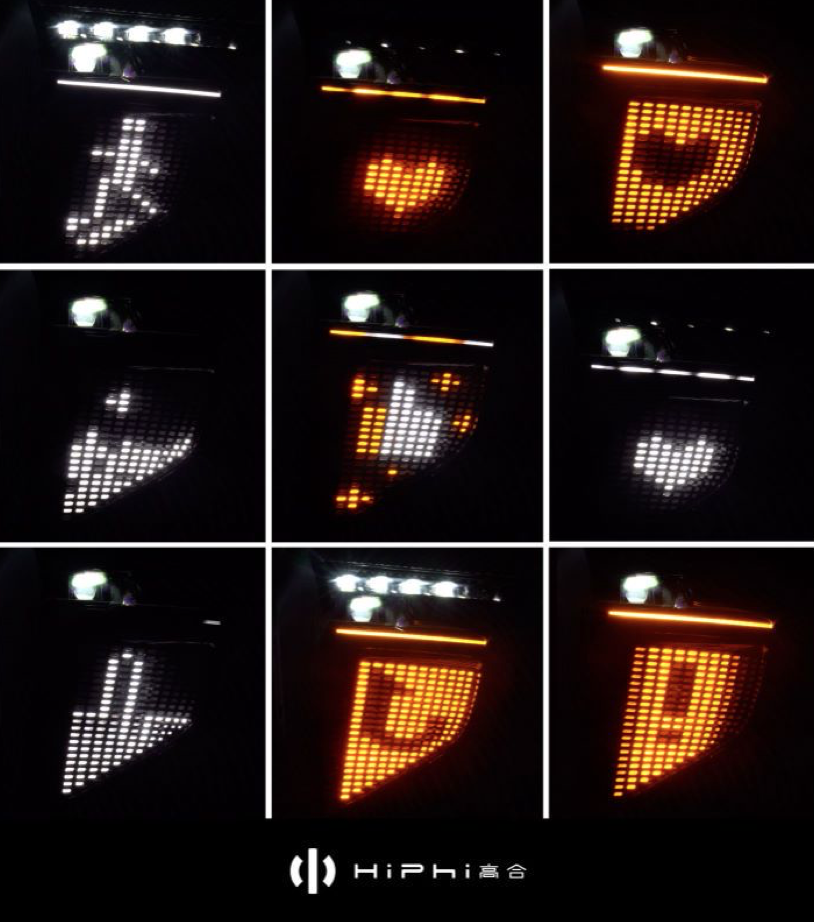 除此之外,HiPhi X还在全球范围内第一次将灯的功能编辑权限开放给用户,通过手机APP,用户可以根据自己需求DIY文字、图像等,并通过PML可编程智能大灯进行投射。比如节日灯光秀,客户自签名,电影播放等,增加了可玩性。