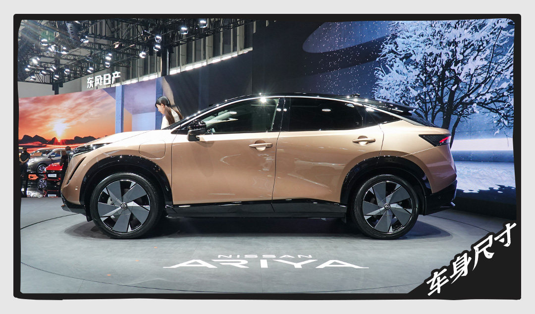 尺寸方面,Ariya长/宽/高:4595/1850/1655mm,轴距:2755mm,介于小型SUV逍客与紧凑型SUV奇骏之间,因应不同车型车重为1.9吨-2.2吨。