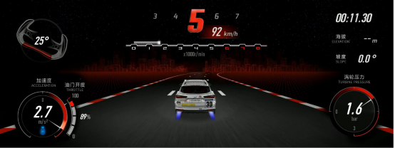 当开启赛道模式时,配合快速飙升的加速度,长安欧尚X5的驾驶舱瞬间变身赛车座舱,充满赛道元素的大屏幕界面动效,实时显示加速G值,同步感受极速狂飙。赛车般轰鸣咆哮的动力声浪,带来超级震撼的听觉效果,让驾驶者体验肾上腺素飚升和荷尔蒙释放的快感,唤醒更多年轻人心中潜伏已久的激情。
