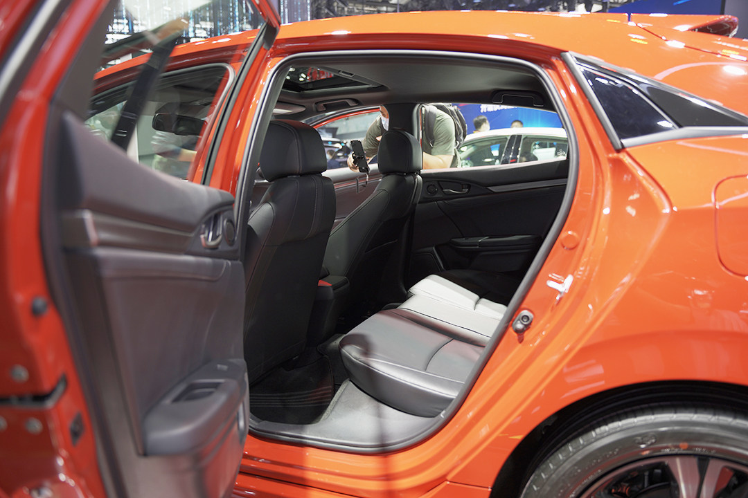 与高尔夫相比,思域两厢完全是不同风格的一款车型,虽然前脸和三厢思域并没有太大的区别,但是把目光移到车尾之后,你会发现思域两厢的设计非常夸张,无论是线条的设计,大灯造型的运用,还是下扩散器和尾灯的布置,整个尾部立体犀利,攻击性十足,容易让人产生驾驶的欲望,原厂状态就达到了改装的效果。