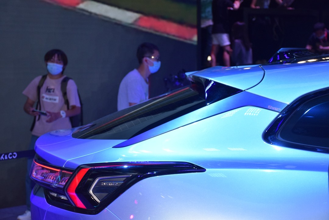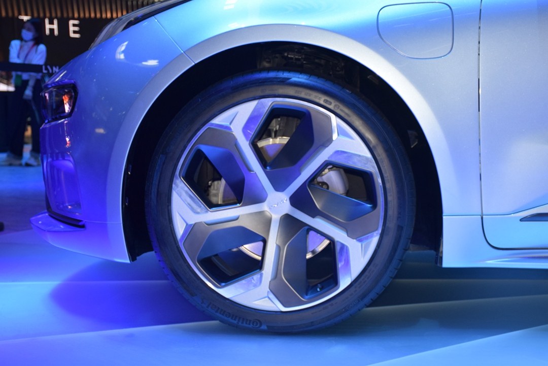 当然了,领克ZERO真正的精髓还是在于侧面。采用两厢设计的它,侧面显得非常流畅运动。五幅运动大轮毂加上低趴的造型,让侧面看上去更加“凶猛”,风格与保时捷帕拉梅拉有些相似。