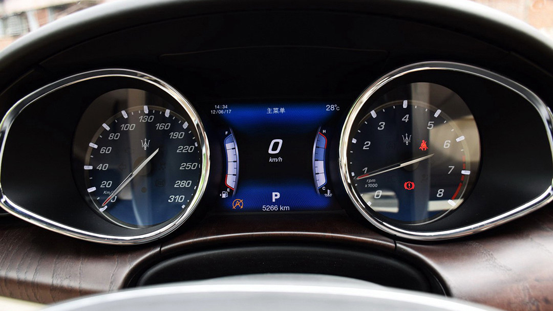 两个采用蓝色表底的炮筒状机械仪表盘看上去十分硬核、帅气,但看到其中仅7英寸的液晶显示屏,便会发现玛莎拉蒂总裁的仪表盘设计并没有跟上潮流。