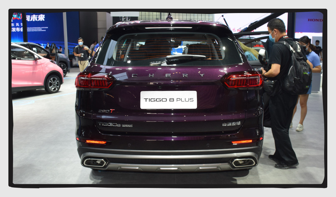 车尾取消了logo,转而使用奇瑞英文车标代替,由于车辆定位原因,车尾比较高大,所以车尾的设计只能在层次感上下功夫,从车顶尾翼到车标,再到车门下方凸起再到保险杠,分层明显,这样做很明显能够降低车辆高大的车身带来的臃肿感。保险杠上的排气口为真材实料,并非装饰,冬天不会出现不冒烟的尴尬。