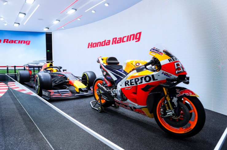 Aston Martin Red Bull Racing F1 赛车 RB16 与 MotoGP 参赛车 RC213V