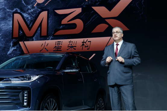 奇瑞汽车股份有限公司执行副总经理白雷蒙在EXEED星途发布会现场讲解M3X火星架构