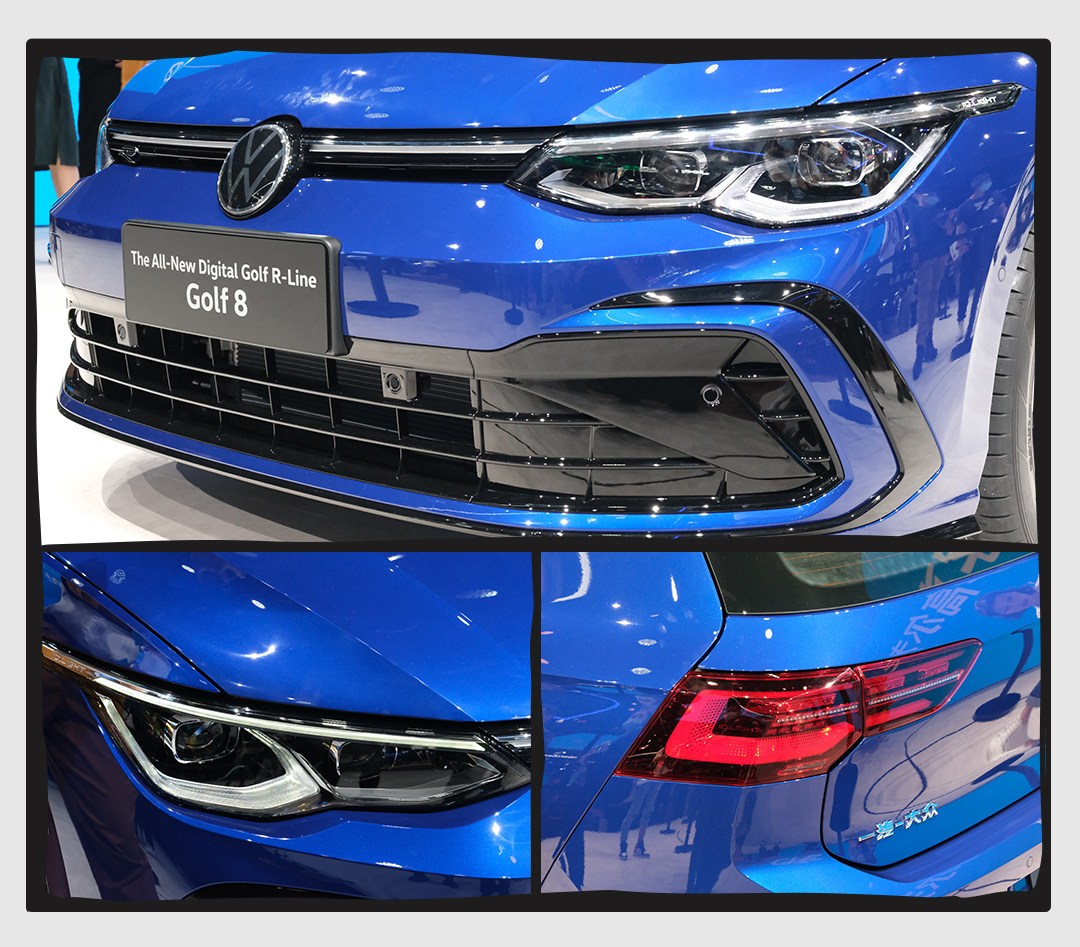 国产的大众第八代高尔夫延续了海外版的设计风格,同时提供普通版和R-Line版两种外观可选。对比起上一代车型,第八代高尔夫车头更加低矮、造型更加简约,整体车辆会更加运动化些。新车长宽高分别为4296/1788/1471mm,轴距为2631mm。值得一提的是,R-Line车型将使用最新的R标并配备17英寸枪灰色轮毂。