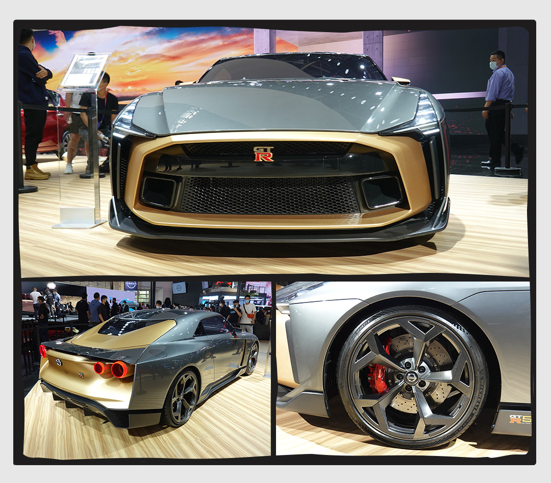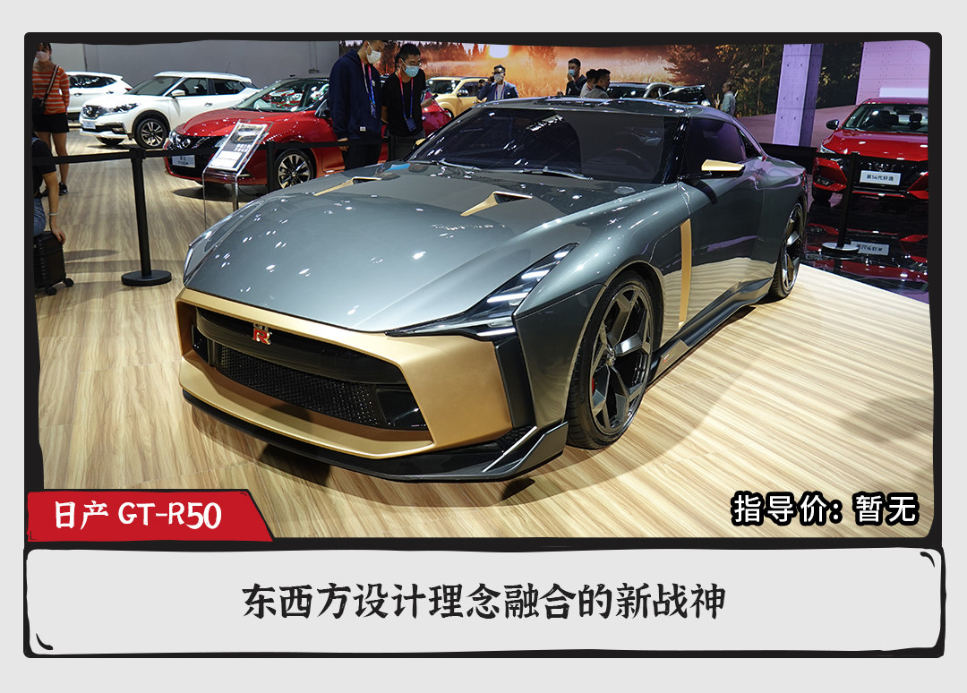 日产GT-R50是基于最新款日产GT-R NISMO打造,由意大利知名设计公司Italdesign操刀设计,可谓是东西方两种设计理念融合打造的新战神。造型上科幻气息相当浓重,整体线条都经过了重新设计,更加富有立体感,前大灯面积缩小,内部采用了LED横条阵列布局。夸张的大嘴配合上低矮的前唇,跟现款车型完全不同,战斗格、科幻感更加强烈。