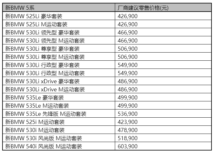 历代BMW 5系都是宝马家族的中流砥柱和豪华商务轿车的典范,如今迎来升级换代新BMW 5系再次展现了作为时代创新先锋的底蕴。秉承“以客户为中心”的原则,专门为中国市场量身打造的长轴距车型带来了多达25项高价值标准配置,在美学设计、数字科技、豪华配置及纯粹驾控四个维度全面升级,以运动豪华商务座驾的标杆之姿傲世而来。M运动套装首次装配新BMW 5系插电式混合动力车型,智能豪华之外更添动感气质,同时搭载了最新的eDrive电力驱动技术,以更加卓越的环保性能,将BMW电动驾驶乐趣带入新的境界。此外,新BMW 5系标准轴距车型还将提供一系列专属外观设计及车漆,为用户带来更多丰富之选。