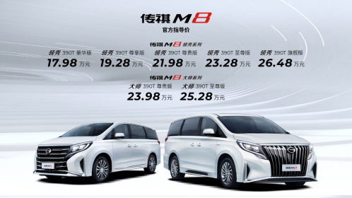 广汽传祺明星车型——全新传祺M8(以下简称“传祺M8”)在本次车展正式上市,新车有2个系列共7个版本,售价为17.98万元至26.48万元。