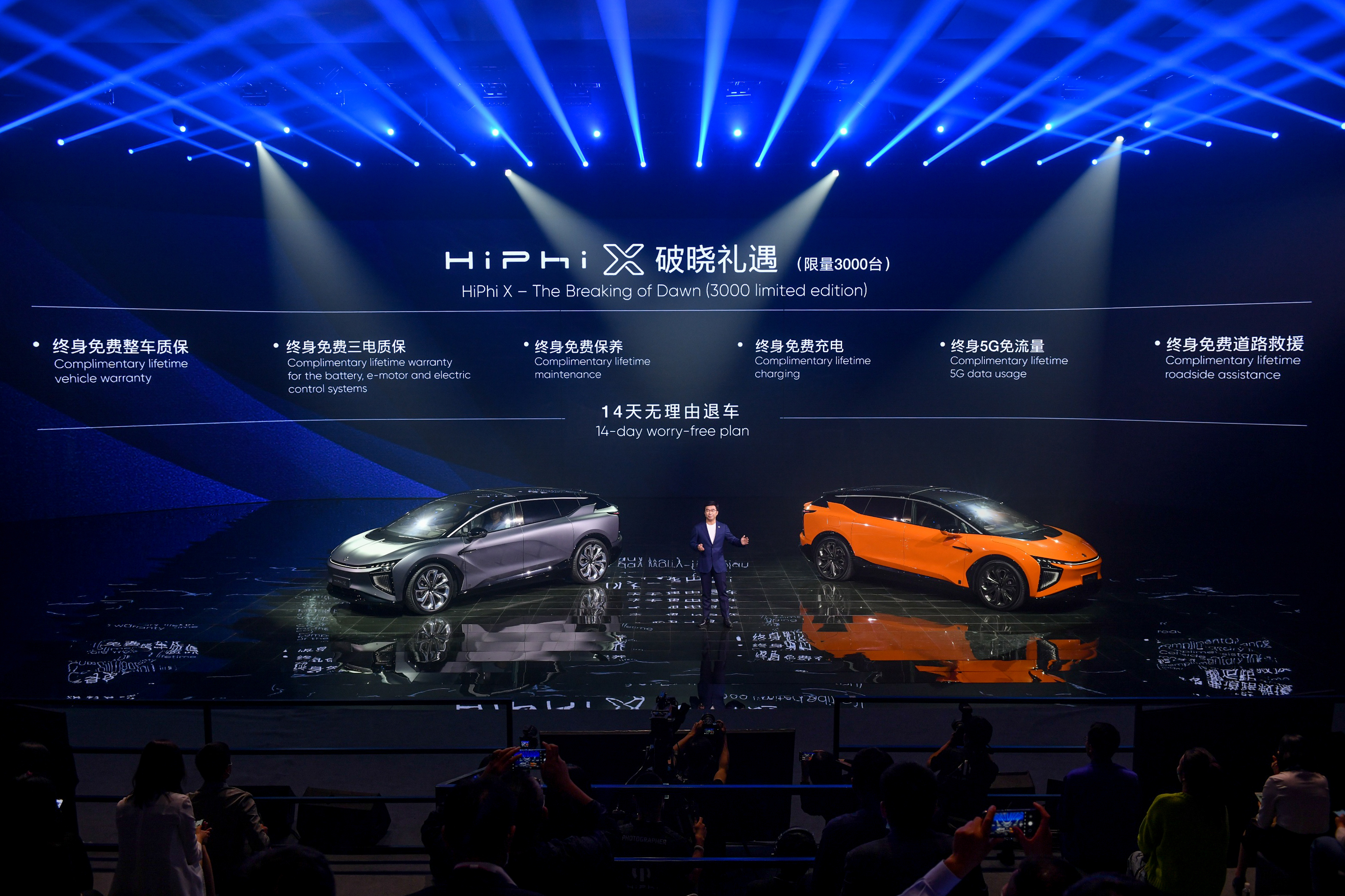 【新闻稿】9月25日,华人运通旗下豪华智能纯电品牌高合HiPhi首款量产车型——可进化超跑SUV 高合HiPhi X亮相2020年北京国际汽车展览会E1展馆E113展台。作为全球上市后在国际A级车展舞台的首秀,高合HiPhi X以“想 往更高”之姿“破晓”而来,以“场景定义设计、软件定义汽车、共创定义价值”三大理念,为用户开创TECHLUXE®科技定义豪华全新品牌体验。高合HiPhi X创始版车型已正式开售,创始版四座车型80万元,创始版六座车型售价68万元,前3000名即创始版车主可享受六大终身服务和信心保障计划。
