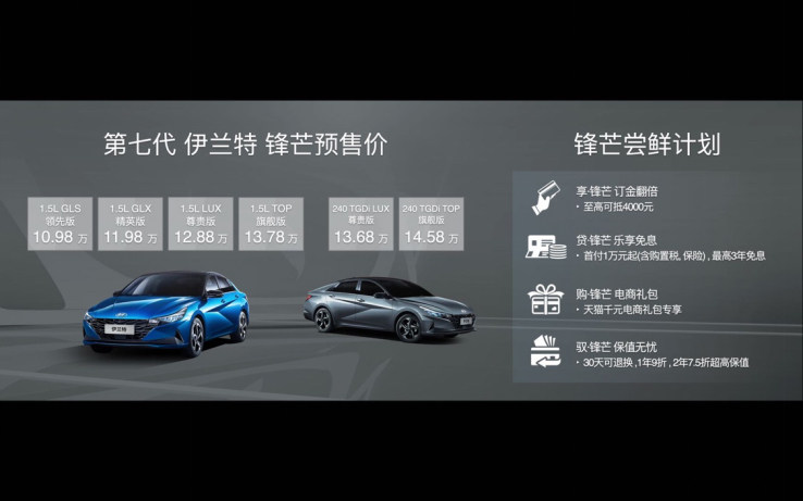 本次车展上,北京现代以强大明星阵容力压群雄,开启预售的第七代伊兰特更成为全场最大焦点。第七代伊兰特是基于第三代技术平台i-GMP平台打造的第二款产品,历经六代进化,将凭借个性互联的先锋体验、引领潮流的先锋设计、超越同级的先锋智能、充沛高效的先锋效能等特质,搅局A级轿车市场,成为北京现代技术品牌转型的重要利器!同时,10.98万元-14.58万元的预售价格和包括享·锋芒订金翻倍、贷·锋芒享乐免息、购·锋芒电商礼包、驭·锋芒保值无忧的“锋芒尝鲜计划”,更凸显出北京现代“以用户为中心”的不变理念。