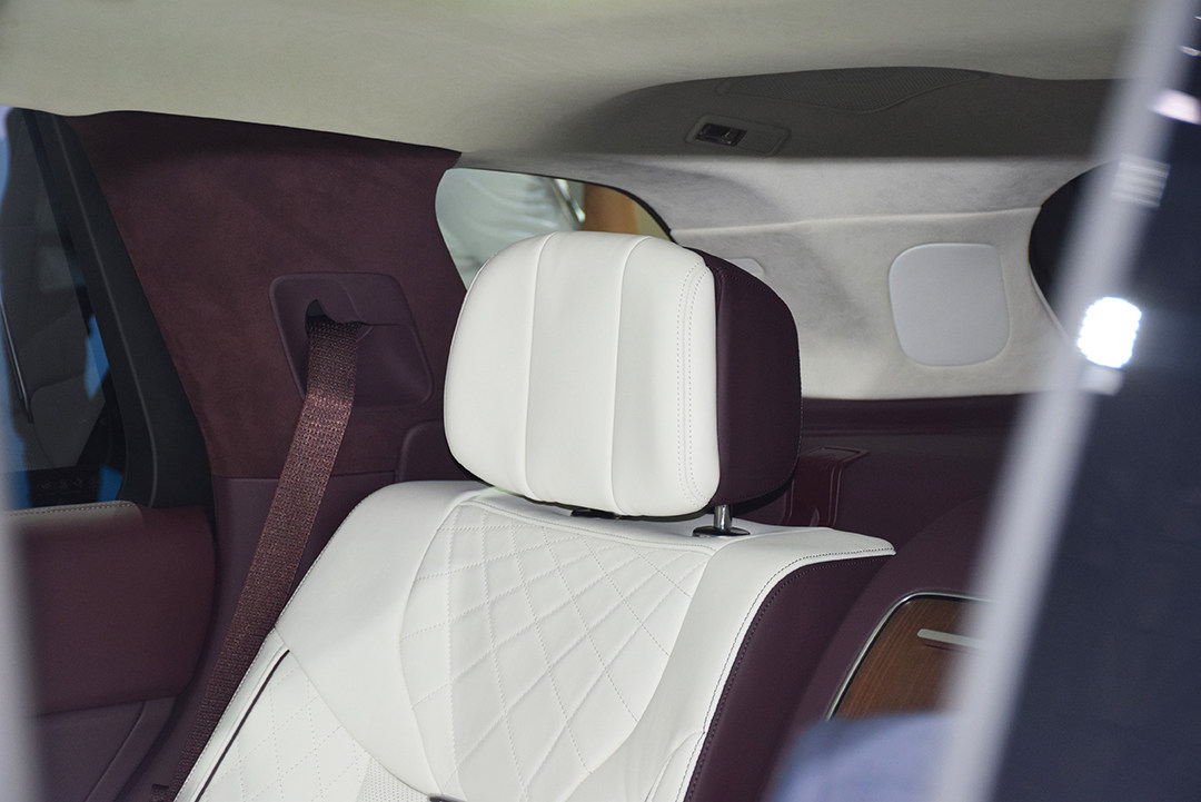 除此之外后排还提供了两块娱乐屏,直接内嵌在前排座椅背部,与座椅融为一体,整体美感更佳。新车将提供四座、六座和七座三种空间布局,并有21英寸和22英寸两种轮毂尺寸可选。