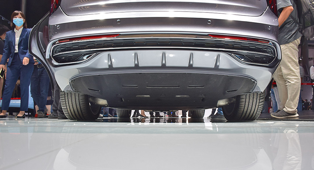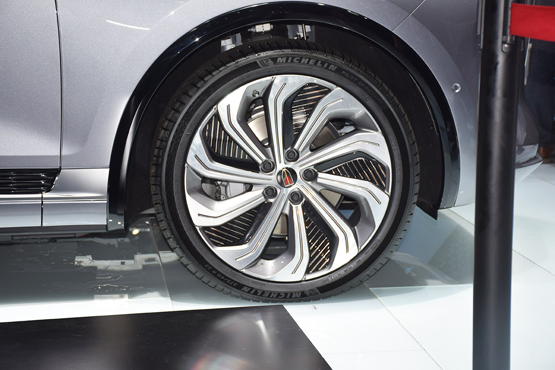 作为一台电动车,红旗E-HS9车尾底部还是用镀铬件勾勒出双边尾排的造型,刻意营造出传统燃油车的风格,硕大的车顶扰流板集成了高位刹车灯,车尾横平竖直的车身线条,也让层次感更丰富。