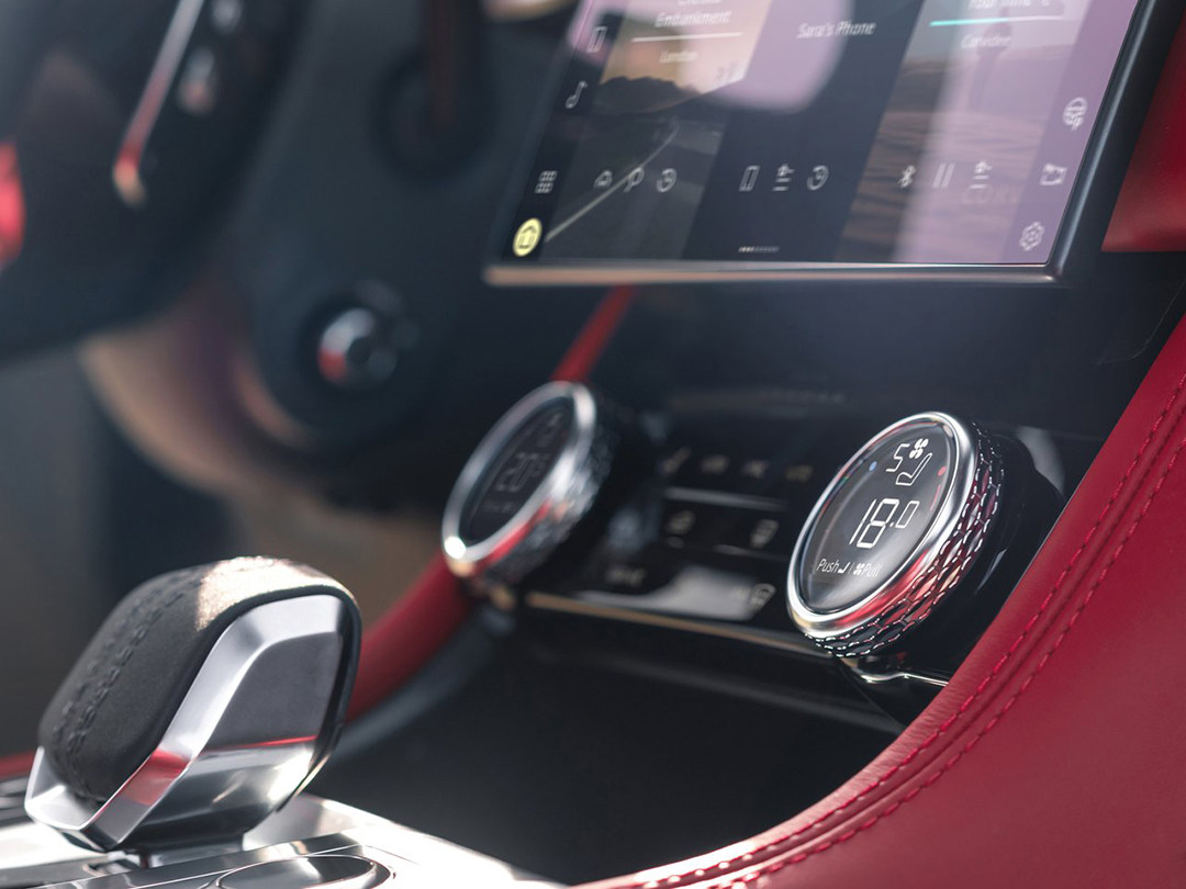 下方的空调调节区域也使用了最新的设计,并且将空调温度设置在旋钮中央显示,跟路虎最新版的内饰有一定的相似之处,通过推拉的方式去调整不同的功能,甚至座椅通风和加热都在该按钮上调节,集成度非常高。