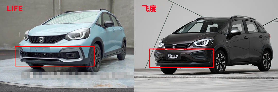 而Cross版的区别就更明显了,LIFE的下包围采用了贯穿式设计,看上去更有冲击力;而飞度雾灯区域与下格栅是完全分离的,看上去更加呆萌。